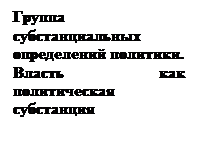 Вторая наиболее распространенная группа дефиниций политики — субстанциальные определения. Они ориентируются на раскрытие той первоосновы, ткани, из которой состоит политика. В этой группе определений существуют несколько трактовок политики. Самая распространенная из них — это трактовка политики как действий, направленных на власть: ее обретение, удержание и использование. Политика, писал М. Вебер, это «стремление к участию во власти или к оказанию влияния на распределение власти, будь то между государствами, будь то внутри государства между группами людей, которые оно в себе заключает»[4].