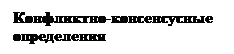 Конфликтные дефиниции политики акцентируют внимание на противоречиях, которые лежат в основе политики, определяют ее динамику. С точки зрения таких противоречий политика рассматривается как деятельность по насильственному и мирному разрешению конфликтов. Хотя общую окраску политике придает конфликт, она обычно невозможна без определенного консенсуса, согласия ее участников, основанного на их общей заинтересованности в общественном порядке, на признании правомерности власти и необходимости подчинения закону и т.п.