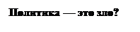 7. Конфликтность политики, ее функционирование как отношений друзей (союзников) — врагов (соперников), повышающие эмоциональную враждебность или, по меньшей мере, напряженность между субъектами политики. Врагам же или соперникам, как известно, очень редко стремятся делать добро, а это — важное требование нравственности.