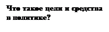 Вопрос о влиянии целей и средств на результаты и нравственную оценку политики издавна является предметом горячих споров. Среди различных воззрений на этот счет можно выделить три основных: 1) нравственный характер политики определяется ее целью; 2) приоритетное влияние на нравственную значимость политики оказывают используемые средства; 3) как цель, так и средства одинаково важны для придания политике гуманного характера, и они должны быть соизмеримы друг с другом и с конкретной ситуацией.