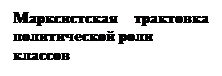 Социальные классы обычно выделяются среди других страт на основе их экономического положения, устойчивости социального положения их представителей, затрудненности социальной мобильности, перехода из низшего класса в высший, а также многочисленности их представителей. Все это обусловливает их существенное, а иногда и определяющее воздействие на политику. Рассматривая разнообразные определения классов, можно выделить три главных подхода к их трактовке: марксистский, веберовский (в честь М. Вебера) и стратификационный (функциональный) (Т. Парсонс, У. Уорнер и др.). Из всех этих подходов наибольшее влияние на политическую мысль и политическую историю XX в. оказала марксистская теория классов, придающая им приоритетную значимость в детерминации политических процессов и политического строя.
