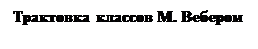 В работе «Экономика и общество» (1922) М. Вебер выделил три типа классов: имущие, получающие доход от собственности; приобретающие, доход которых определяется от продажи рабочей силы и ситуации на рынке труда, и социальные классы, особенностью которых является высокая внутригрупповая мобильность, легкость и типичность внутригрупповых перемещений отдельных индивидов и целых поколений. Классами современного ему общества он называл 1) рабочий класс; 2) мелкую буржуазию; 3) не имеющую собственности интеллигенцию и специалистов; 4) класс собственников и лиц, привилегированных в силу высокого образования. Современные последователи М. Вебера выделяют два новых класса: 1) работники сферы услуг и 2) лица, живущие за счет государственных пособий (пенсионеры, студенты и т.п.). Все классы имеют специфические общественные и политические интересы.
