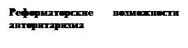 В то же время авторитарная политическая система имеет и свои достоинства, которые особенно ощутимы в экстремальных ситуациях. Авторитарная власть обладает сравнительно высокой способностью обеспечивать политическую стабильность и общественный порядок, мобилизовывать общественные ресурсы на решение определенных задач, преодолевать сопротивление политических противников. Все это делает ее достаточно эффективным средством проведения радикальных общественных реформ.