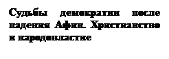 Однако спасти демократию не смогли ни карательные меры, ни даже пришедшее на ее закате осознание необходимости конституционно ограничить решения большинства и тем самым оградить государство и граждан от капризов и сиюминутных настроений плебса. Афинская республика была подорвана не только вырождением демократии, но прежде всего экономическими причинами, низкой эффективностью труда рабов, а также военными поражениями. Олигархический переворот 411 г. до н.э. положил начало периоду политической нестабильности и постепенной ликвидации демократической формы правления.