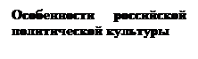 В России также сложились определенные особенности политической культуры, прежде всего обусловленные ее геополитическим положением, доминировавшими формами коллективного образа жизни, длительной дистанцированностью граждан от реальных рычагов власти, низкой политической ролью механизмов самоуправления и самоорганизации населения. Причем в XX в.; на характер политической культуры сильнейшее влияние оказали уничтожение тоталитарными режимами целых социальных слоев (купечества, гуманитарной интеллигенции, офицерства) и народностей, отказ от рыночных регуляторов развития экономики, насильственное внедрение коммунистической идеологии. Это не только нарушило естественные механизмы и трансляторы российских традиций, преемственность поколений, развитие ценностей плюралистического образа жизни, но и деформировало межкультурные связи и отношения России с мировым сообществом. В целом же такая политика послужила усеченному воспроизводству и развитию российской цивилизации.