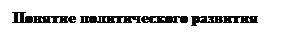 Таким образом, политическое развитие можно определить как нарастание способностей политической системы к гибкому приспособлению к изменяющимся социальным условиям (требованиям групп, новому соотношению сил и ресурсов власти) при сохранении и увеличении возможностей для элит и рядовых граждан выполнять свои специфические функции в деле управления обществом и государством.