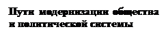 Считается общепризнанным, что модернизация носит альтернативный характер. Однако мировой опыт позволил уточнить тот некогда интуитивно формировавшийся образ «современного государства», чьи стандарты в организации экономики, политики, социальных отношений выражают необходимые цели переходных преобразований. К таким универсальным требованиям в сфере экономики следует отнести, например, товарно-денежные регуляторы производства, увеличение затрат на образование, рост роли науки в рационализации экономических отношений и т.д. В социальной сфере можно говорить о необходимости формирования открытой социальной структуры с неограниченной мобильностью населения. В области политики — это плюралистическая организация власти, соблюдение прав человека, рост политических коммуникаций, консенсусная технология реализации управленческих решений и проч.