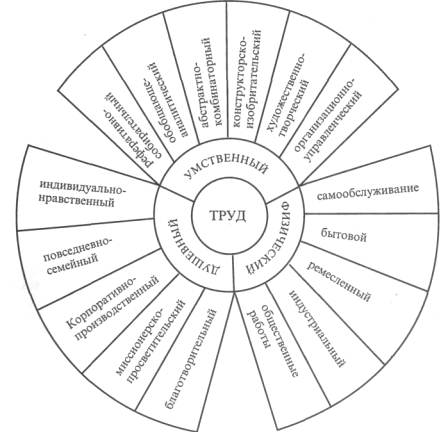 Таким образом, ни одна из охарактеризованных разновидностей труда не может быть признана лучшей или менее важной вообще. Но для каждого отдельного воспитанника, принимающего участие во всех видах труда, одна или некоторая часть из всех его разновидностей должна иметь (а в реальной жизни так всегда и бывает) более важное, а то и определяющее значение.