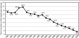 За последние два десятилетия этот показатель в РФ имеет стойкую тенденцию к снижению и составил 8,5 в 2008 г. (рис. 1.6).