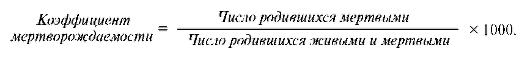 Смертность в антенатальном и интранатальном периодах в сумме дают мертворождаемость, коэффициент которой рассчитывается по следующей формуле.