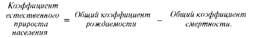 3. Коэффициент естественного прироста населения представляет собой наиболее общую характеристику демографической ситуации и исчисляется как разность между показателями рождаемости и смертности по следующей формуле.