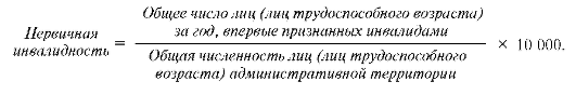 Уровень инвалидизации населения оценивается показателем первичной инвалидизации, который рассчитывается по следующей формуле.