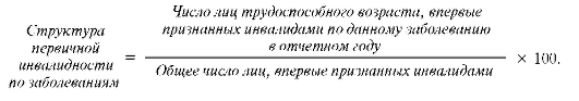 Для анализа инвалидности по причинам рассчитывают показатель структуры первичной инвалидности по заболеваниям.