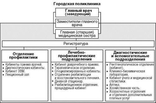 Рис. 9.1. Примерная организационная структура городской поликлиники для взрослых
