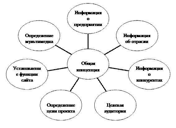 Общая концепция - основные понятия проекта: цель создания web-сайта, целевая аудитория, объем и возможности сайта, вид используемых средств мультимедиа (рис. 5).