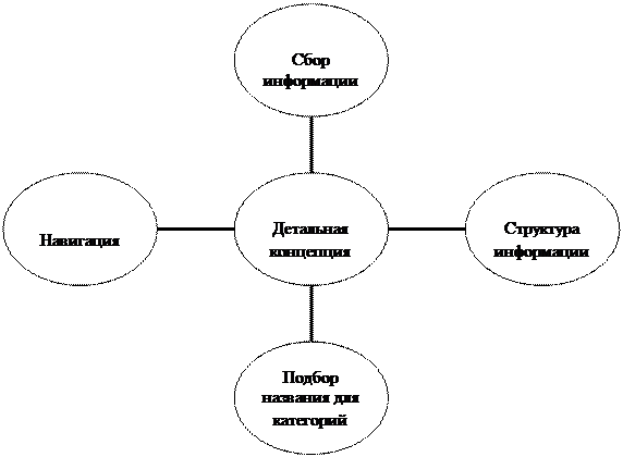 Детальная концепция – описание производственного процесса реализации проекта. Здесь определяются текстовая информация, графика и другие данные, используемые в проекте (рис. 6).