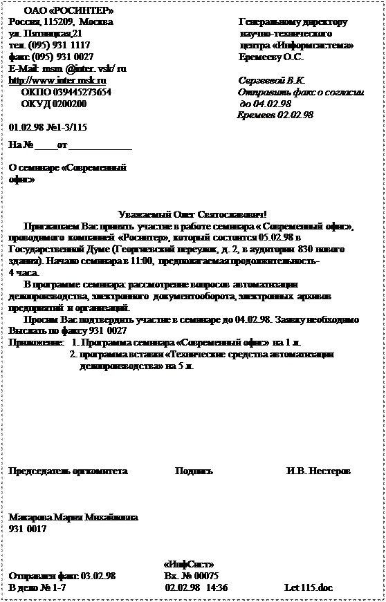 - Ссылка на регистрационный номер и дату документа