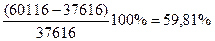 Третья ситуация. При снижении выручки на 56400 тыс. руб. или на 12% прибыль уменьшилась на (37616 –14816) = 22800 тыс. руб. или на 60,61%. Рассчитаем соотношение изменения выручки и прибыли: