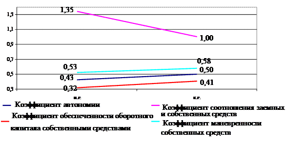 | Коэффициент автономии | 0,43 | 0,50 | 0,07 | 117,19 | ≥ 0,5 |