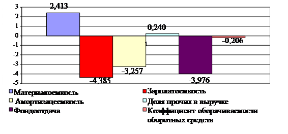 | 6. Изменение рентабельности ресурсов за счет снижения коэффициента оборачиваемости оборотных средств | –0,00206 | –0,206 |