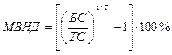 МВНД – модифицированная внутренняя норма доходности; БС – будущая стоимость денежного потока от операционной деятельности; ТС – текущая стоимость денежного потока от инвестиционной деятельности (абсолютное значение); Т – горизонт расчета.
