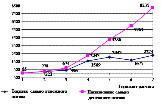 | 5. Накопленное сальдо, тыс. руб. | 278,001 | 673,797 | 2242,952 | 4285,505 | 5960,897 | 8234,737 |