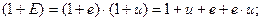 Получена формула следующим образом: пусть инвестируется 1 под объявленную доходность Е, через год 1 прирастет на величину Е, т.е. получим (1 + Е). Полученный доход должен обеспечить реальный доход инвестору, т.е. (1 + е), который должен быть увеличен во столько раз, во сколько раз деньги обесцениваются в связи с инфляцией, т.е. в (1 + и) раза. Получим: