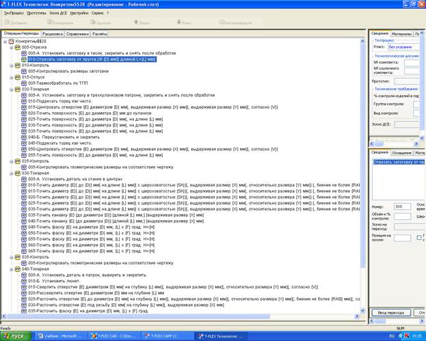После формирования в обобщенном виде (без размеров) технологического процесса осуществляем ввод размеров. Лучше всего это делать на основе открытого чертежа t-flex CAD.