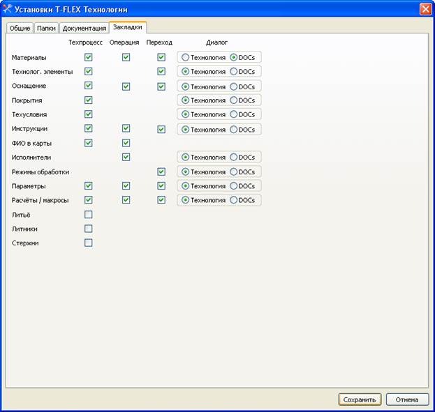 Для автоматического проектирования должны быть открыты закладки «технологические элементы». При первоначальной установке ТЕХНОЛОГИИ эти закладки скрыты.