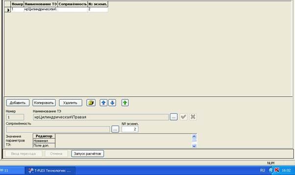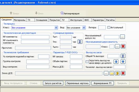 В закладку «ТЭ» техпроцесса вводится описание детали (сборочного узла) в виде набора ТЭ с их конкретными характеристиками.