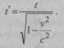 где i — длина тела в движущейся системе со скоростью К по отношению к неподвижной системе; l — длина тела в покоящейся системе.