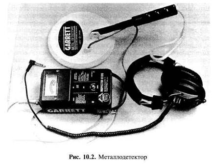 Для обнаружения металлических объектов используются металлодетекто-ры индукционные армейского образца (ИМП) и специально изготовленные для криминалистических целей портативные селективные металлодетекторы повышенной точности, обладающие встроенной системой автоматического поддержания уровня чувствительности. С помощью таких приборов можно избирательно обнаруживать объекты из черных и цветных металлов, они снабжены световой и звуковой индикацией (рис. 10.2).