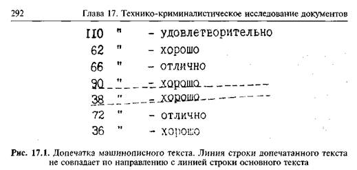 3) не производилось ли допечатывание текста и на какой пишущей машине (рис. 17.1);