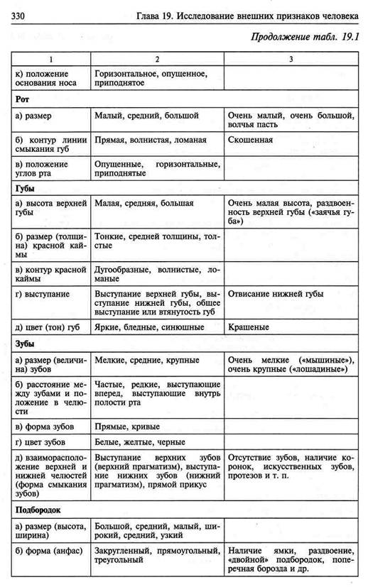 Далее производится описание элементов внешности человека по схеме, приведенной в табл. 19.1. Основные элементы внешности изображены на рис. 19.4-19.33.