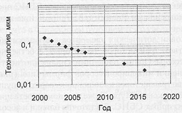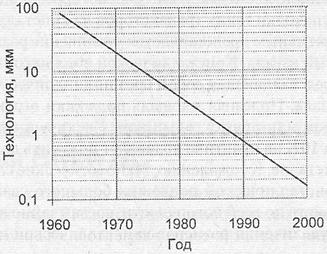 Рис 1.9. Размер минимального элемента на кристалле интегральной микросхемы