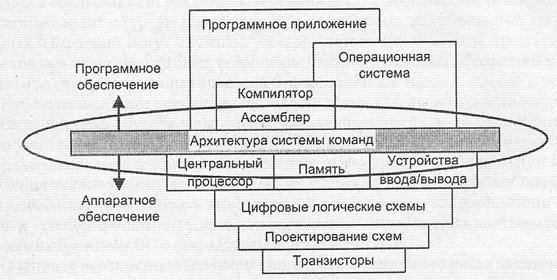 Рис. 2.1. Архитектура системы команд как интерфейс между программным и аппаратным обеспечением