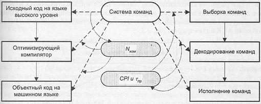 Рис. 2.2. Взаимосвязь между системой команд и факторами, определяющими эффективность вычислений