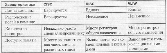 Таблица 2.1 позволяет оцепить наиболее существенные различия в архитектурах типа CISC, RISC и VLIW.