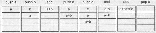 Таким образом, рассмотренное выше выражение в польской записи имеет вид: а = ab+ac×+. Данная форма записи однозначно определяет порядок загрузки операндов и операций в стек (рис. 2.5).