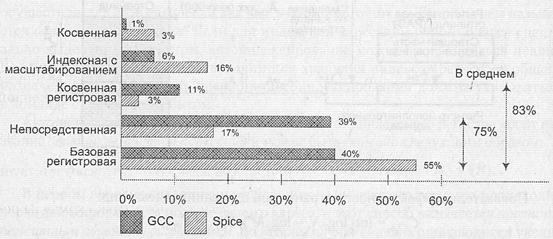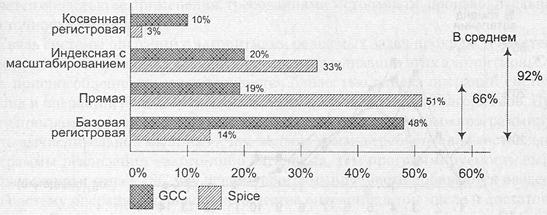 Рис. 2.61. Частота использования методов адресации на программах GCC и Spice (Intel 80x86)