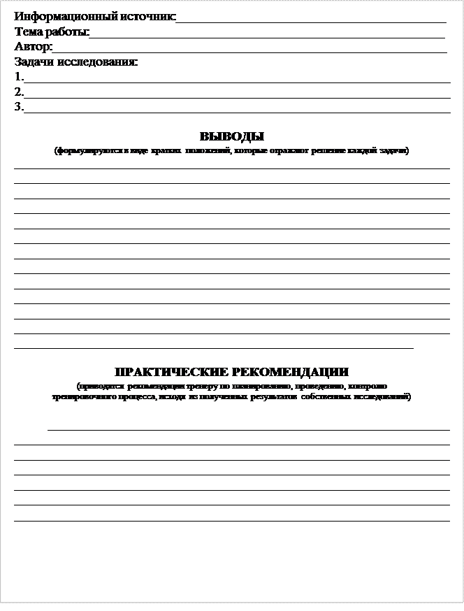 Исходный материал – шаблон Выводов и практических рекомендаций.