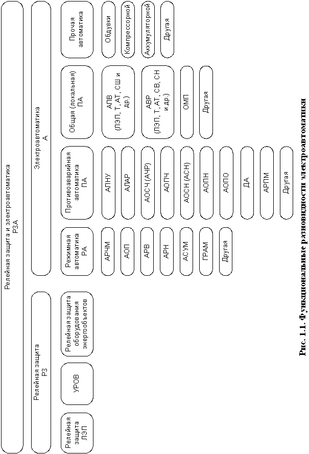 Функциональные разновидности электроавтоматики ЭЭС приведены на рис. 1.1. Отметим, что к собственно релейной защите можно отнести защиты линий электропередачи (ЛЭП), защиты оборудования энергообъектов и устройства резервирования отказа выключателя (УРОВ).