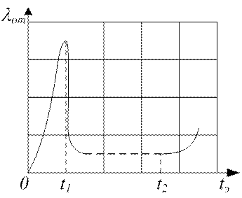 Посмотрим, как изменяется величина параметра потоков отказов λ от за время эксплуатации УРЗА tэ (рис.2.1).