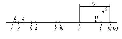 Рекомендуется диаграмму перемещения строить, начиная с конца предыдущего цикла, т.е. с точки 11´, и закончить началом последующего цикла 1´. Это позволит более точно построить график в точке минимума функции. Части вспомогательных кривых 11´-0´ и 12´-1´ на рис. 23 показаны штриховыми линиями.