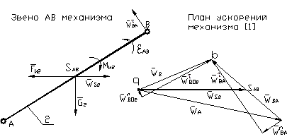 В качестве примера определим силу и инерционный момент звена 2 механизма, схема которого изображена на рис. 3.