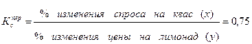 или х = 0,75у = 0,75 * 10% = 7.5%. Таким образом, при увеличении цены на лимонад на 10% спрос на квас возрастет на 7.5%. Ответ – б.