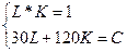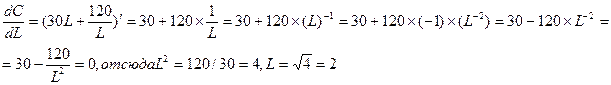 . Отсюда К=1/L соответственно C=30L+120/L. Найдем минимум C по L
