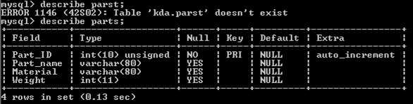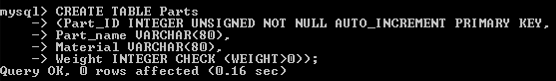 (Part_ID INTEGER UNSIGNED NOT NULL AUTO_INCREMENT PRIMARY KEY,