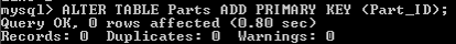 ALTER TABLE Parts ADD PRIMARY KEY (Part_ID);