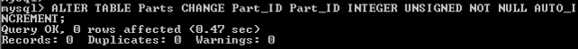 ALTER TABLE Parts CHANGE Part_ID Part_ID INTEGER UNSIGNED NOT NULL AUTO_INCREMENT;